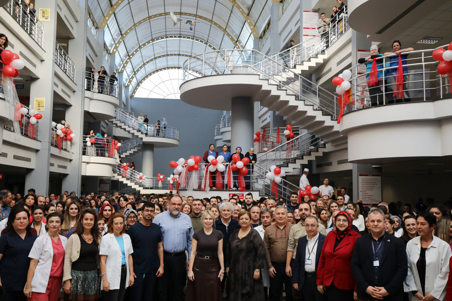 AÜ Hastanesi H Blok Atrium'da düzenlenen yeni yıl kutlamasına Rektör Prof. Dr. Özlenen Özkan, Rektör Yardımcısı Prof. Dr. Ayşe Gülbin Arıcı, Prof. Dr. Tuncer Karpuzoğlu Organ Nakli ve İleri Sağlık Araştırmaları Enstitüsü Müdürü Prof. Dr. Ömer Özkan, Hastane Başhekimi Prof. Dr. Yıldıray Çete, Başhekim Yardımcıları Prof. Dr. Derya Mutlu, Doç. Dr. Murat Uçar, Doç. Dr. Volkan Doğru, Dr. Öğr. Üyesi Ali Ünal, Hastane Başmüdürü Öğr. Gör. Hatice Yavuz Yüce, akademisyenler ve hastane çalışanları katıldı.