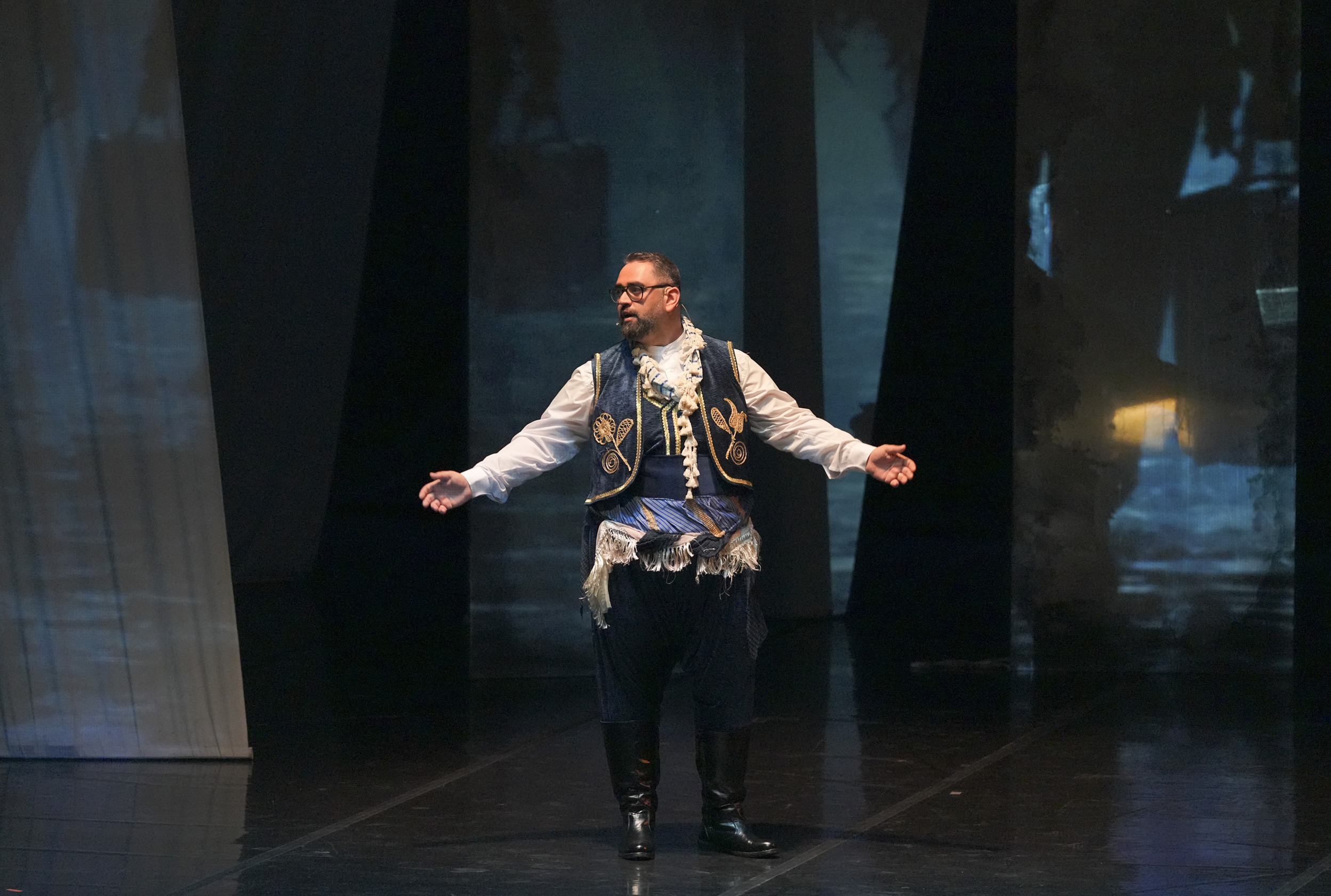 Eserin görsel dünyası da anlatının ayrılmaz bir parçası olarak kurgulanıyor. Kobalt mavi, kırık beyaz ve altın yaldızdan oluşan renk dramaturjisi; denizi, toprağı ve ruhu simgeleyen üç katmanlı bir estetik dil oluşturuyor. Böylece sahnede farklı yörelerin hikâyeleri ayrışırken, tek bir solukta birleşiyor.