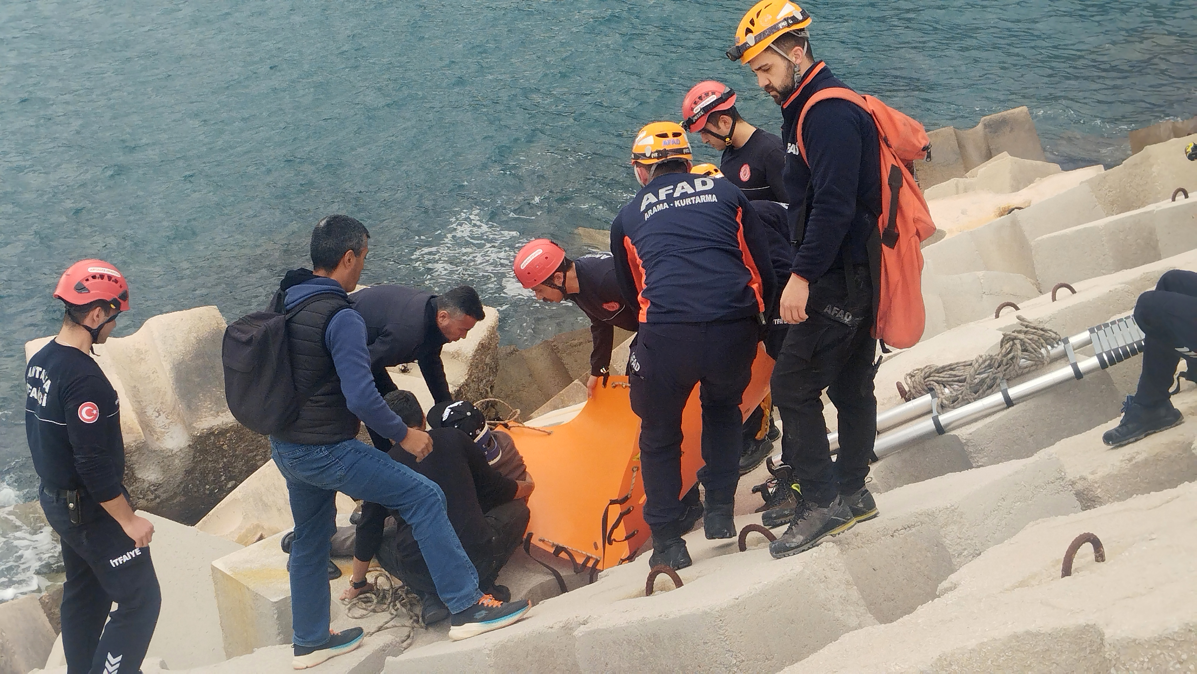 Olay, saat 13.00 sıralarında, Antalya Balıkçı Barınağı'nda meydana geldi. Komşusu Tarık Çetin ile balık tutmaya giden Atilla Toprak, dalgakıranı çevreleyen beton bloklar üzerine çıktı. Ayağı kayan Toprak düşüp, beton bloklar arasına sıkıştı. Durumu fark eden Çetin’in ihbarı üzerine bölgeye itfaiye, sağlık ve AFAD ekipleri sevk edildi. Ekipler, kayalıklara sıkışan Atilla Toprak'ı yaklaşık 1 saat süren çalışmayla bulunduğu yerden kurtardı. Toprak, halat ve sedyeyle yaklaşık 2 metre yüksekliğindeki dalgakıranın üzerinden diğer tarafa geçirildi. Sağ bacağı ve kafasında ağrı hissettiğini belirten Toprak, sağlık görevlilerinin ilk müdahalesinin ardından Akdeniz Üniversitesi Hastanesi'ne kaldırıldı.
