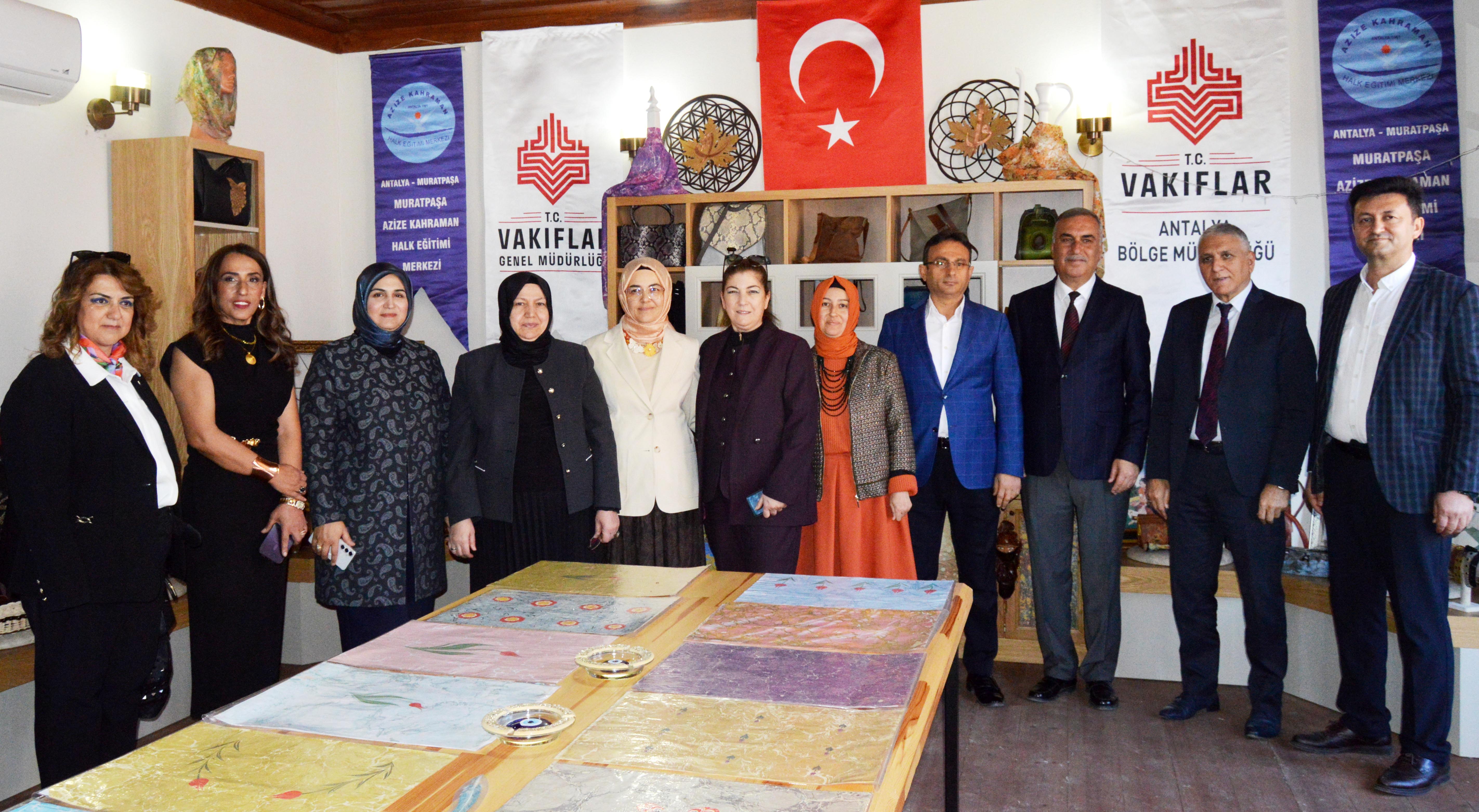 Tarihi Kaleiçi semtinde Vakıflar Bölge Müdürlüğü'ne ait binada gerçekleşen serginin kurdelesini Muratpaşa İlçe Milli Eğitim Müdürü Mustafa Coşkunsu, İl Milli Eğitim Şube Müdürü Mehmet Özbal, yazı işleri müdürü Mehmet Ali Çelebi, AKHEM Müdürü İnci Bacak, Çamlıbel Halk Eğitimi Merkezi Müdürü Canat Duru, Vakıflar Bölge Müdür Yardımcısı Mevlana Çakıral, Eğitim Bir-Sen Antalya Şube Başkanı Eyüp Bülent Miran, Muratpaşa İlçe Kaymakamı İhsan Kara'nın eşi Hülya Kara, İl Milli Eğitim Müdürü Mehmet Yasin Eriş'in eşi Şükran Eriş, Antalya Milletvekili Mustafa Köse'nin eşi Ünzile Köse birlikte kesti.