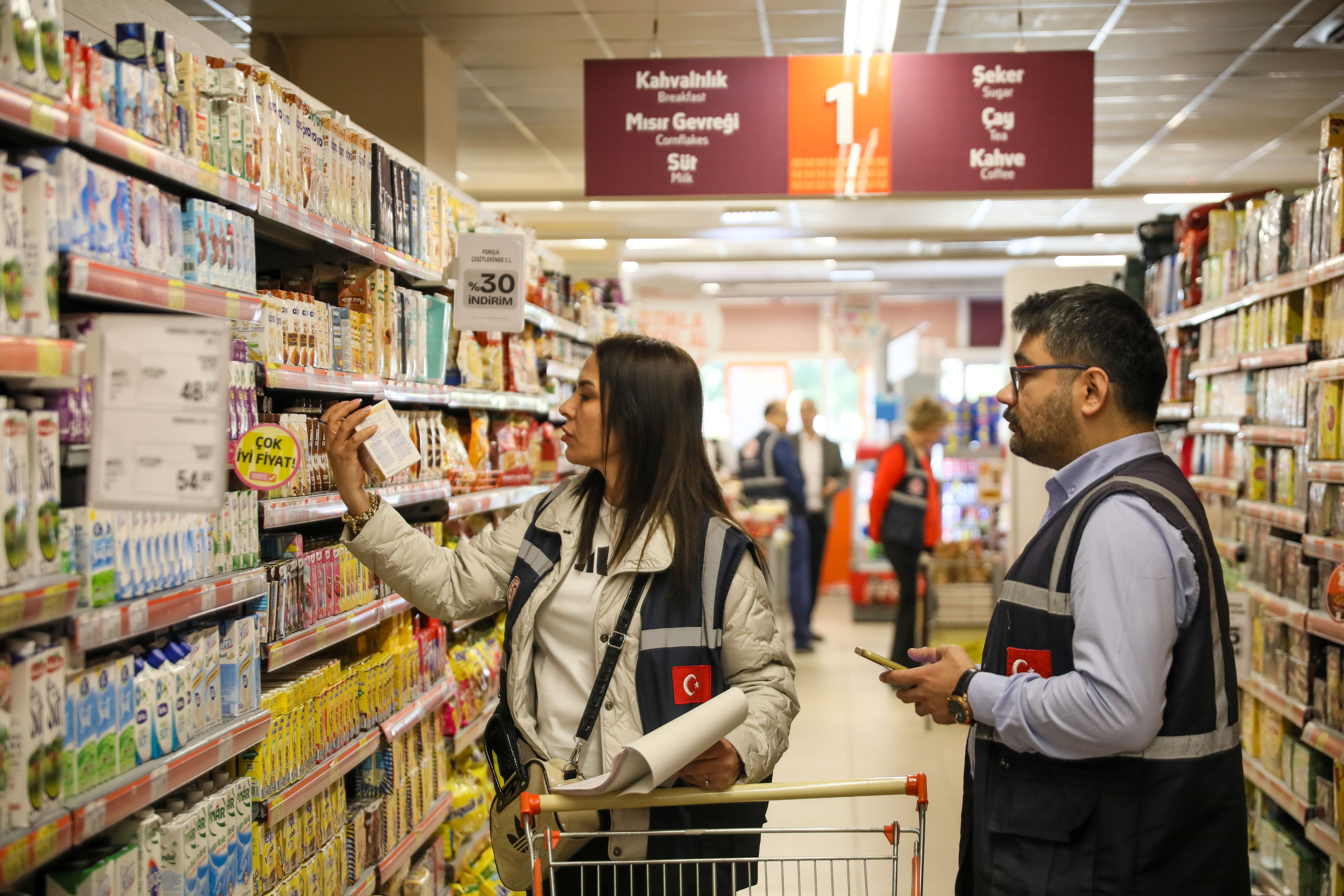 Ticaret Bakanlığı tarafından ramazan ayı nedeniyle 81 ilde kafe, restoran, fırın ve marketlerde denetim gerçekleştiriyor. Eş zamanlı denetimlere istinaden Antalya'da Ticaret İl Müdürlüğü ekipleri Muratpaşa ilçesindeki bir zincir markette fiyat etiketleri ve raflardaki ürünleri inceledi. Marketteki farklı reyonlardaki rasgele seçilen ürünlerle doldurulan alışveriş sepetindeki ürünler kasadan geçirildikten sonra fiş üzerinden, fiyat etiketleriyle karşılaştırıldı. İncelenen markette herhangi bir uygunsuzluk bulunmadı.