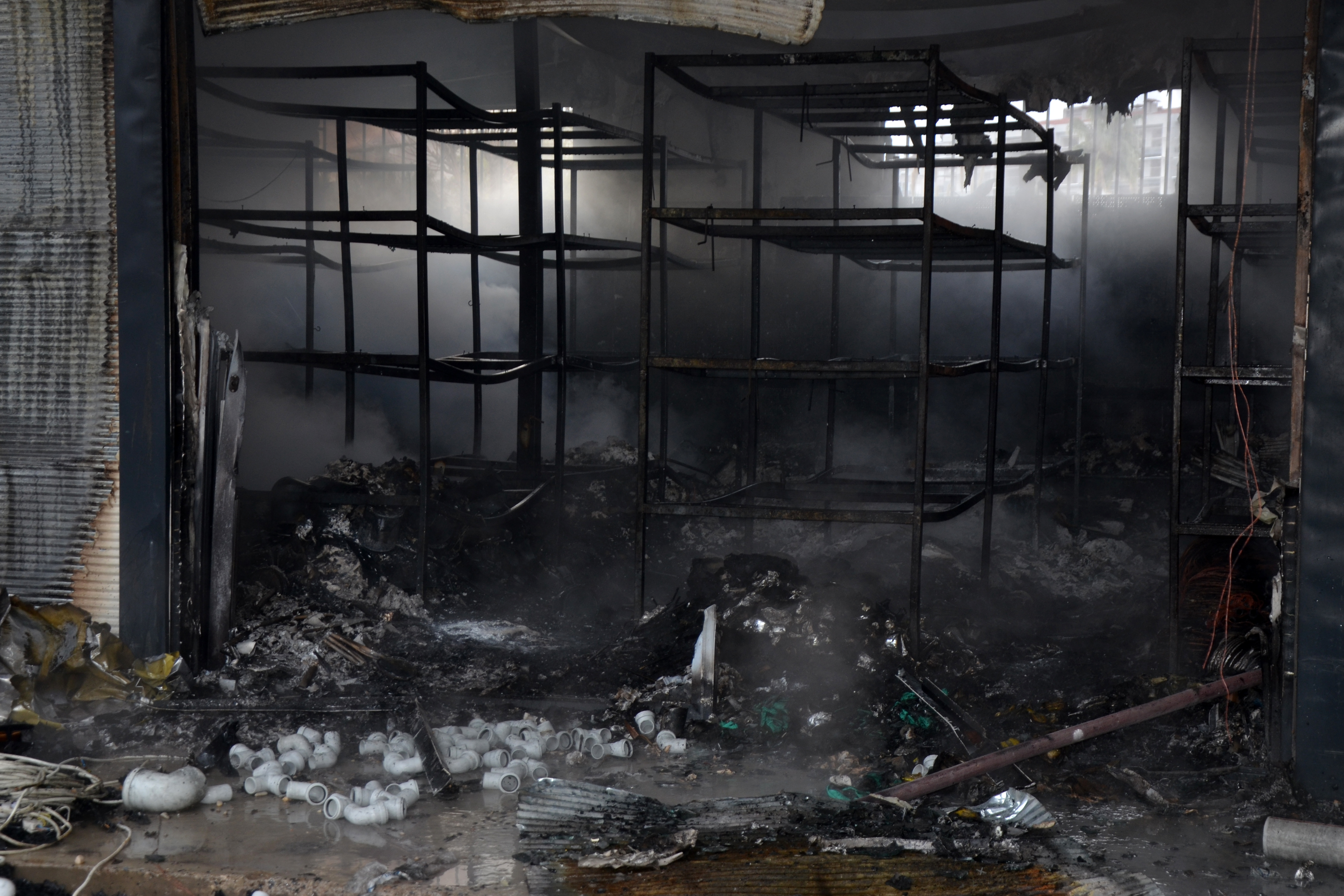 Serik ilçesi Orta Mahalle Cumali yolu üzerinde faaliyette bulunan inşaat malzemesi satışı yapan firmanın deposunda sabaha karşı henüz bilinmeyen nedenle yangın çıktı. Yangını fark eden bir vatandaş önce 112'yi ardından da iş yeri sahibini bilgilendirmesi üzerine olay yerine çok sayıda itfaiye ekipleri sevk edildi. İtfaiye ekiplerinin yaklaşık 2 saatlik çalışması sonucunda yangın kontrol altına alınırken, depoda bulunan inşaat malzemeleri küle döndü. Deponun arka kısmında park halinde bulunan servis midibüsü yangından kısmen zaman zarar gördü. İtfaiye ekipleri soğutma çalışmasını sürdürürken, depoda oluşan yangın nedeniyle yaklaşık 20 milyon TL zarar oluştuğu öğrenildi. Polis yangınla ilgili soruşturma başlattı.