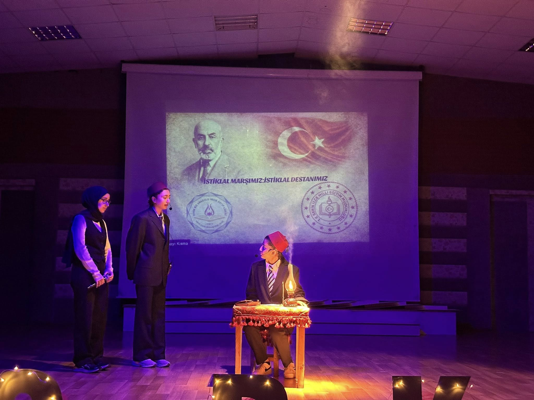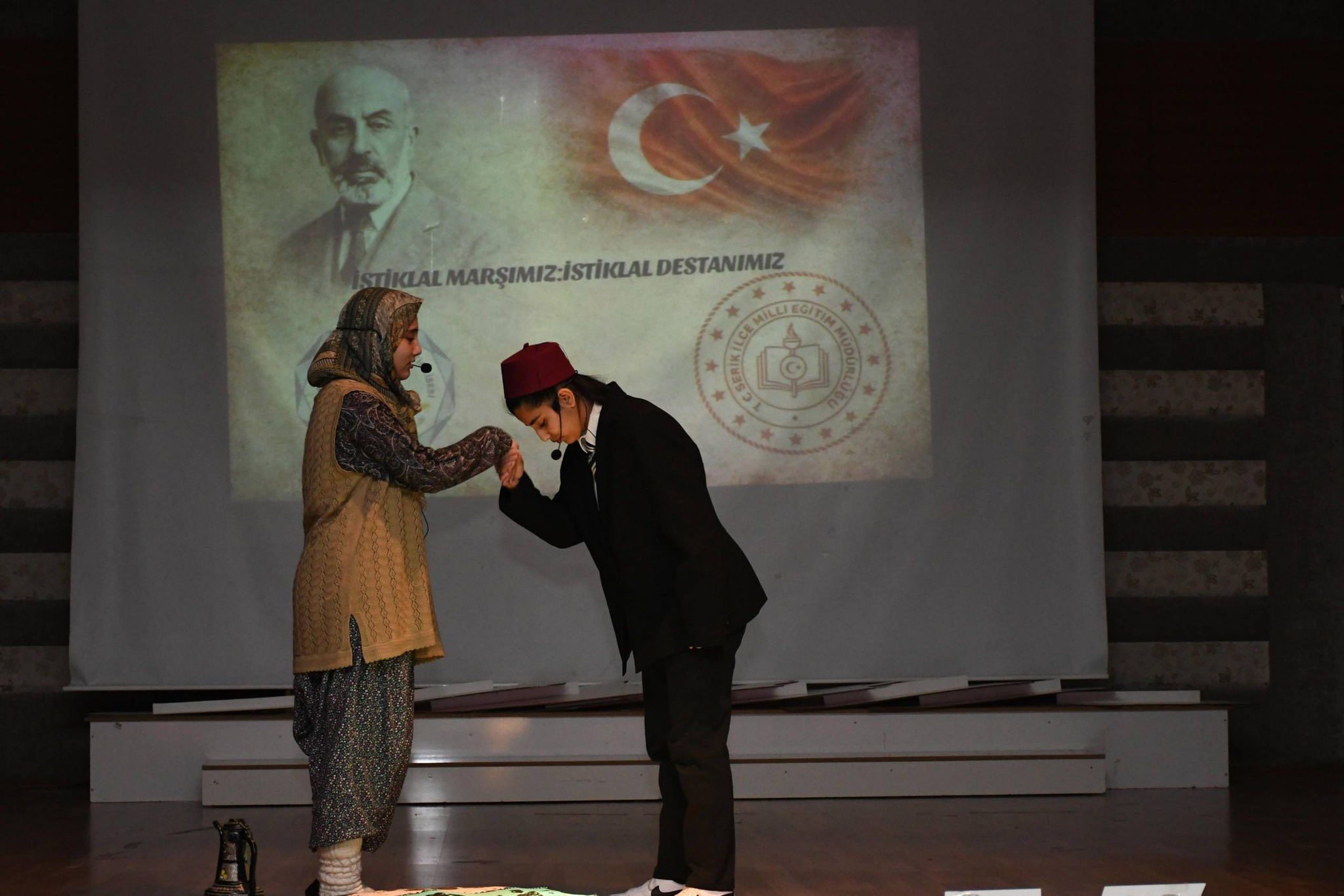 Serik Kız Anadolu İmam Hatip Lisesi Konferans Salonunda düzenlenen programa Kaymakam Cemal Şahin, İlçe Jandarma Komutanı Üsteğmen Ali Duman, İlçe Milli Eğitim Müdürü İkram Ekiz, okul müdürü, siyasi partiler ve STK temsilcileri, öğretmenler, öğrenciler ve veliler katıldı. Saygı duruşu ve İstiklal Marşı'nın ardından öğrenciler tarafından Mehmet Akif Ersoy'un hayatının ele alındığı 'İstiklal Marşımız ve İstiklal Destanımız' adlı gösterim davetlileri duygulandırdı. Program sonunda İl Milli Eğitim Müdürlüğü tarafından düzenlenen okullara arası şiir, kompozisyon ve resim yarışmasında dereceye giren öğrencilere hediyelerini Kaymakam Cemal Şahin ve protokol üyeleri takdim etti.