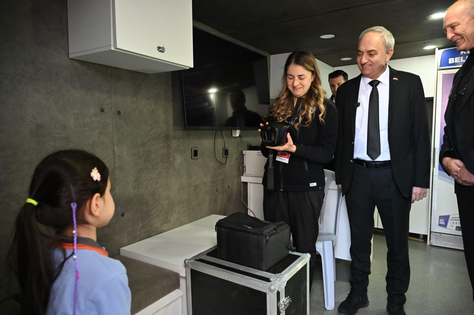 Kepez Belediyesi, çocukların göz sağlığını korumak ve geleceğe daha sağlıklı nesiller yetişmesine katkı sağlamak amacıyla okullarda öğrencilere yönelik göz sağlığı taramaları gerçekleştiriyor. İlçedeki okullarda yürütülen göz sağlığı taramaları kapsamında bugüne kadar Kepez genelinde 159 okulda 32 bin 383 öğrencinin göz muayenesi gerçekleştirildi. Yapılan taramalarda 3 bin 341 öğrencide çeşitli görme problemleri tespit edildi. Kepez Belediye Başkanı Mesut Kocagöz, ilçedeki okullarda sürdürülen göz sağlığı taramaları kapsamında tarama çalışmalarının gerçekleştirildiği Mehmet Kemal Dedeman İlkokulu’nu ziyaret etti. Öğrencilerle bir araya gelen Başkan Kocagöz, taramalar hakkında bilgi verdi. Başkan Kocagöz, göz taraması yapılan alanda öğrencilerle birlikte göz ölçümü yaptırdı. Göz ölçümleri, göz numarasını hızlı şekilde belirleyen otorefraktometre cihazı ile gerçekleştirildi.
