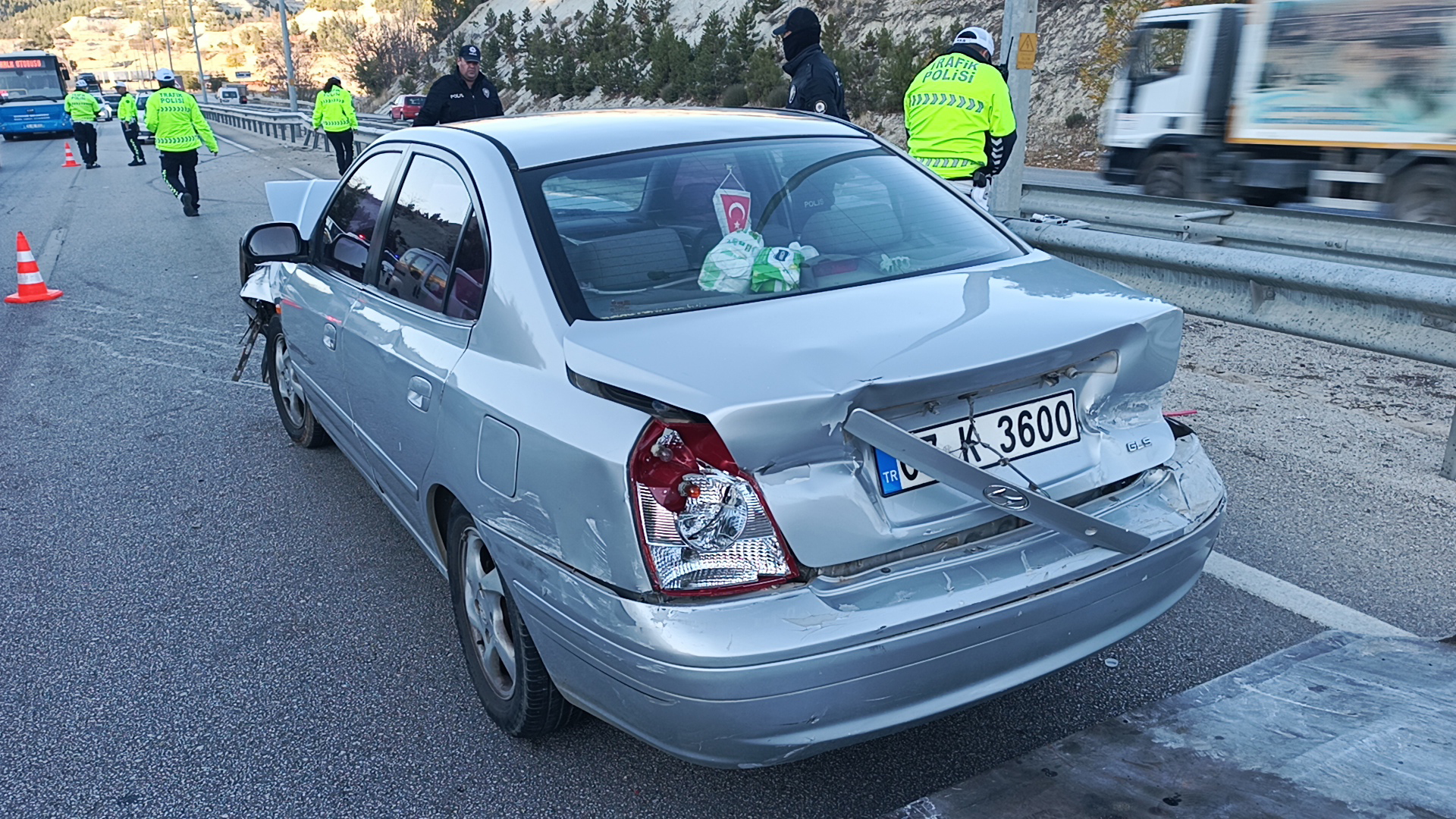Burdur- Antalya kara yolunun 3'üncü kilometresinde dün akşam üzeri meydana gelen kazada Mesut Ö. (45) yönetimindeki 07 BSU 668 plakalı TIR ile aynı yöne seyreden Nurunisa A. (46) yönetimindeki 07 K 3600 plakalı otomobil çarpıştı. Sürücünün direksiyon hakimiyetini kaybettiği otomobil bariyerlere çarptı. İhbar üzerine olay yerine sağlık ve polis ekipleri sevk edildi. Kazada otomobildeki Nurunisa A., çocukları B.A. (15) ve M.A. (11) hafif yaralandı. Yaralılar ambulanslarla Burdur Devlet Hastanesi'ne götürülerek tedaviye alındı. TIR sürücüsü ifadesi alınmak üzere polis merkezine götürüldü.